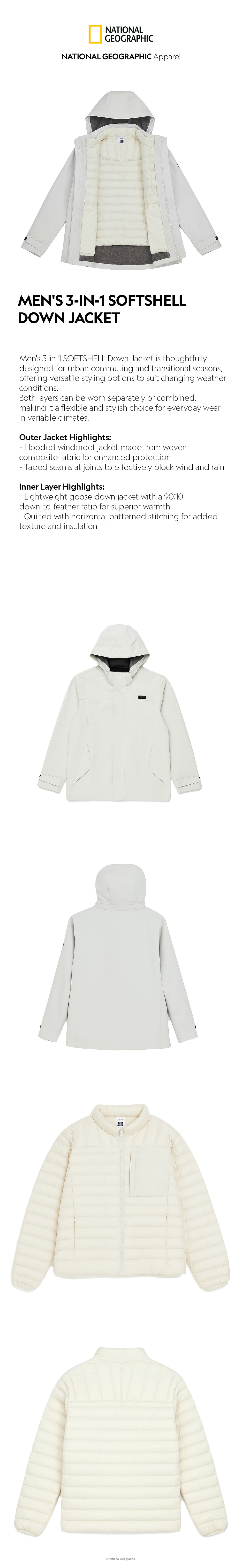 Men's 3-in-1 SOFTSHELL Down Jacket is thoughtfully designed for urban commuting and transitional seasons, offering versatile styling options to suit changing weather conditions. Both layers can be worn separately or combined, making it a flexible and stylish choice for everyday wear in variable climates.