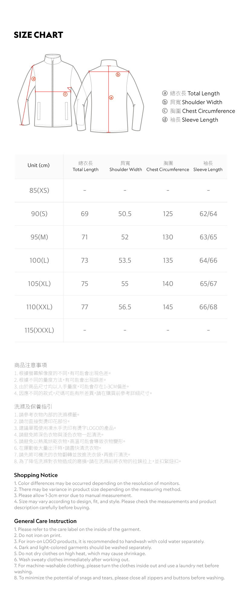 - 採用WINDSTOPPER材質,兼備防風及透氣排汗性能