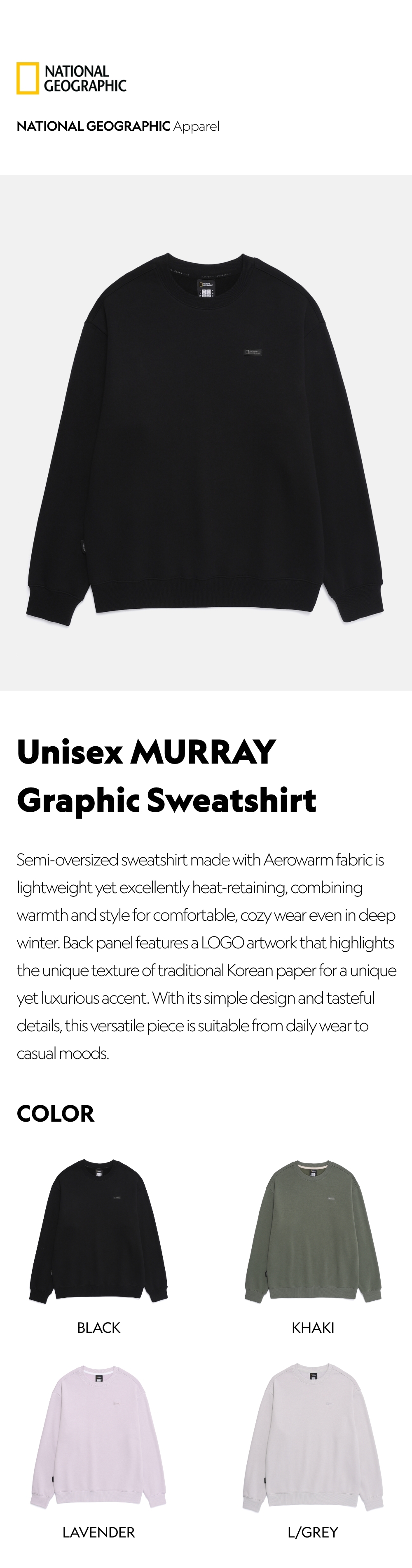 Semi-oversized sweatshirt made with Aerowarm fabric is lightweight yet excellently heat-retaining, combining warmth and style for comfortable, cozy wear even in deep winter.