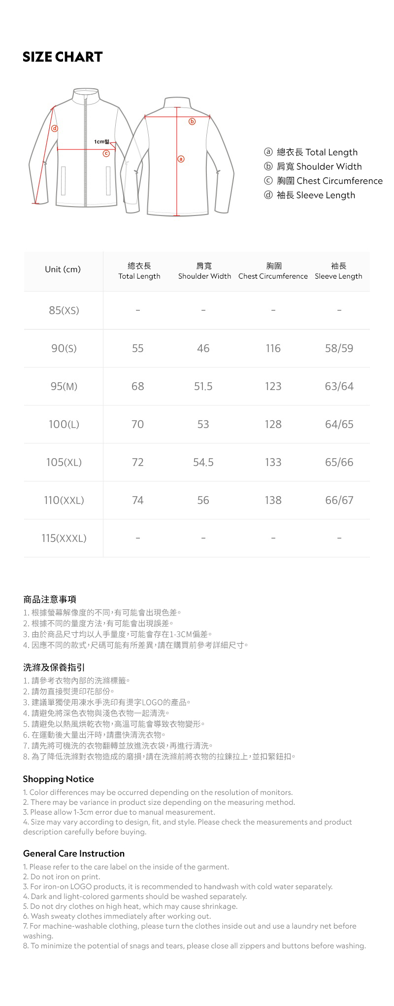 - 發熱內襯及高領設計,可增強保暖性能