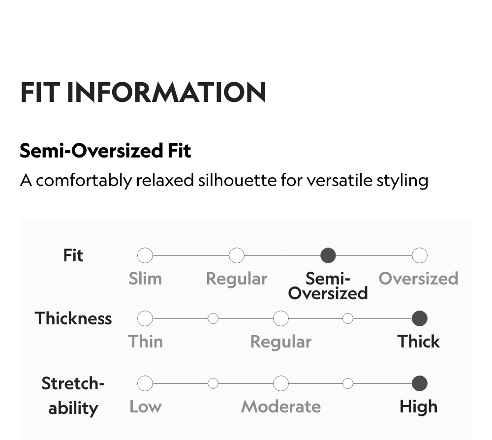 Semi-Oversized Fit / Thickness : Thick / Stretchability : High