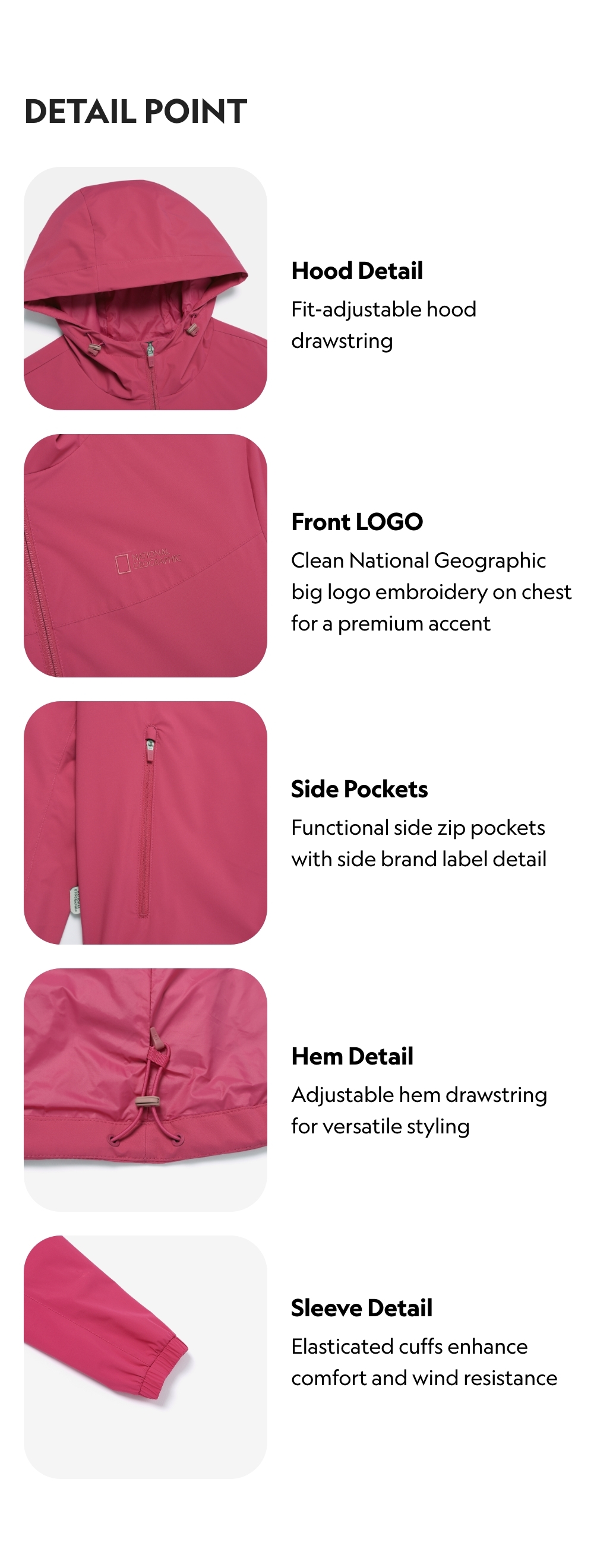 Clean National Geographic big logo embroidery on chest for a premium accent