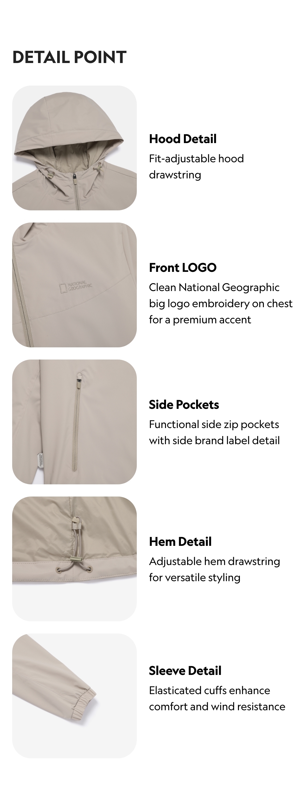 Clean National Geographic big logo embroidery on chest for a premium accent