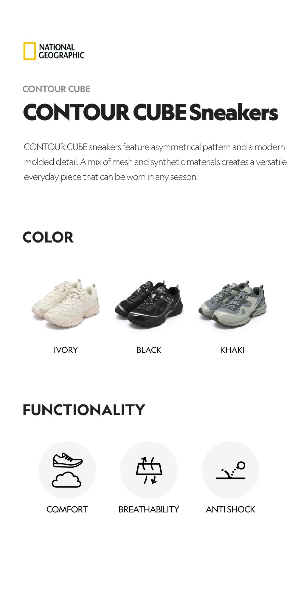 CONTOUR CUBE sneakers feature asymmetrical pattern and a modern molded detail. A mix of mesh and synthetic materials creates a versatile everyday piece that can be worn in any season.