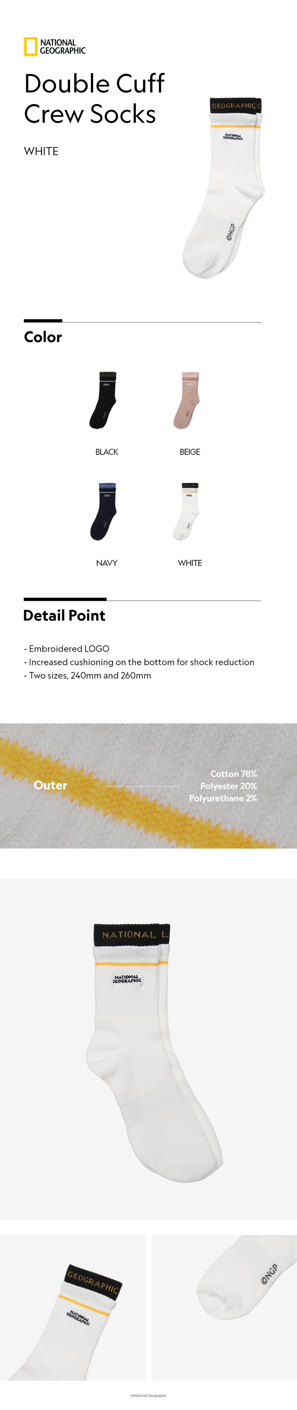 Double Cuff Crew Socks - WHITE