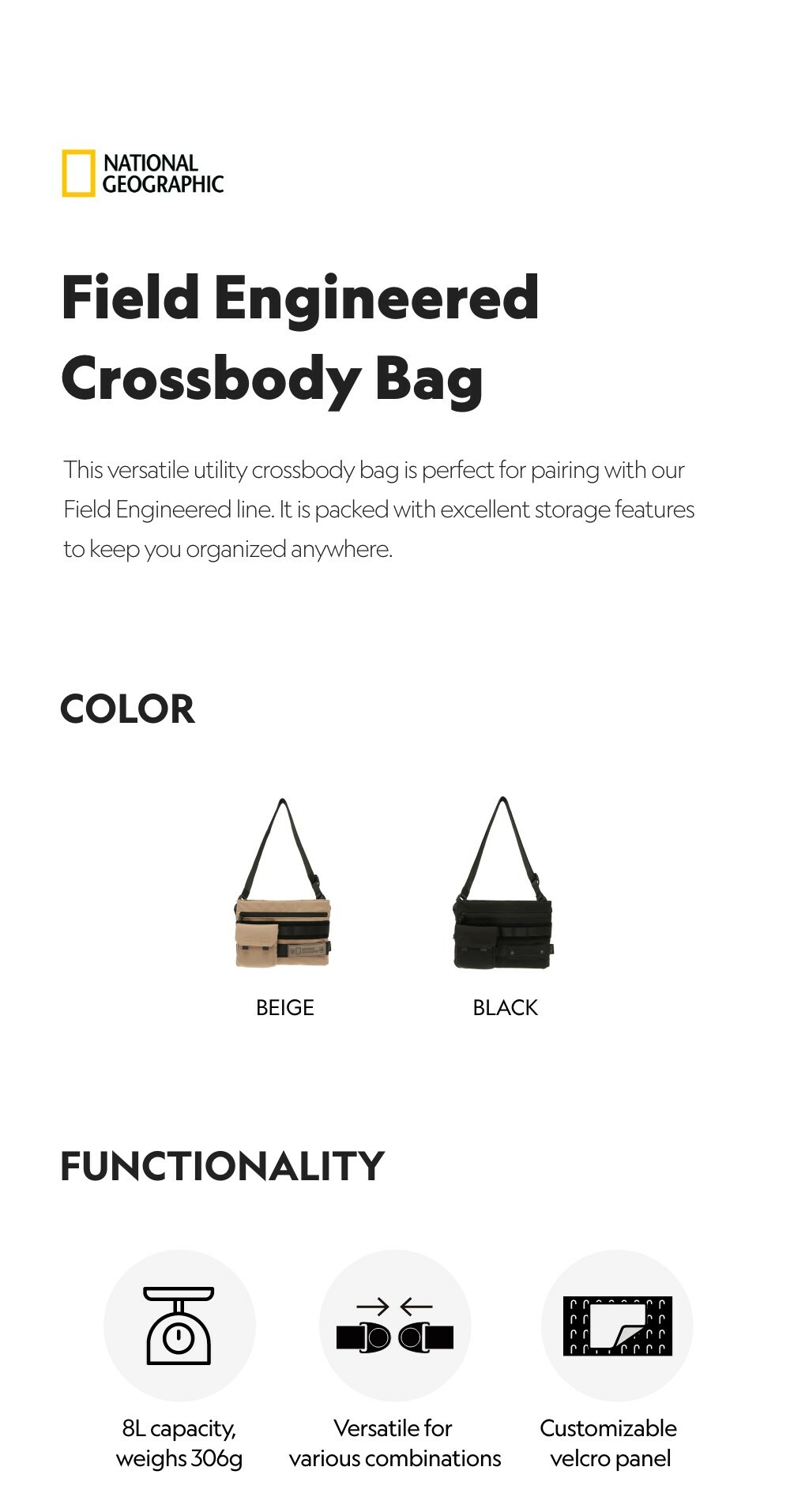 - This versatile utility crossbody bag is perfect for pairing with our Field Engineered line. It is packed with excellent storage features to keep you organized anywhere.