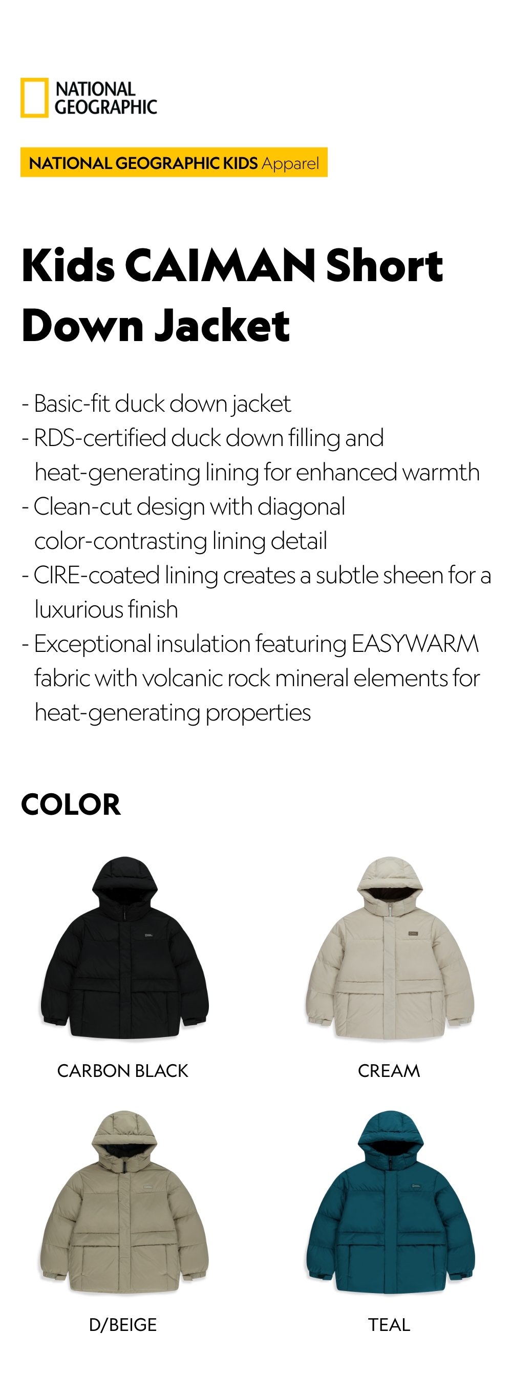 - RDS-certified duck down filling and heat-generating lining for enhanced warmth