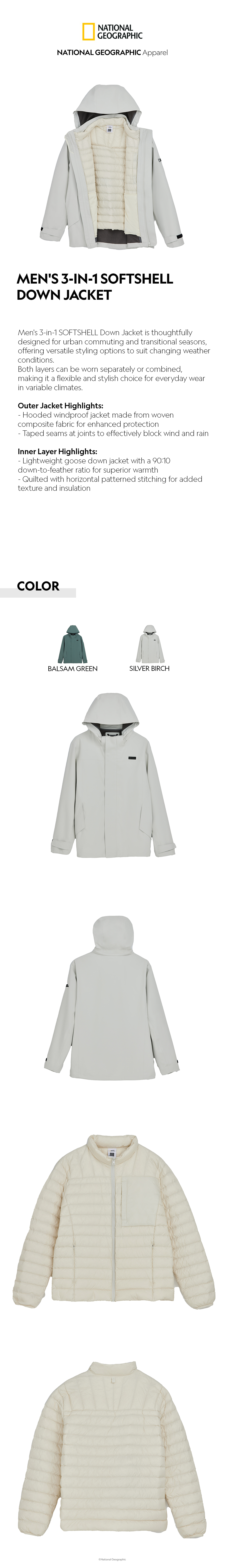 Men's 3-in-1 SOFTSHELL Down Jacket is thoughtfully designed for urban commuting and transitional seasons, offering versatile styling options to suit changing weather conditions. Both layers can be worn separately or combined, making it a flexible and stylish choice for everyday wear in variable climates.