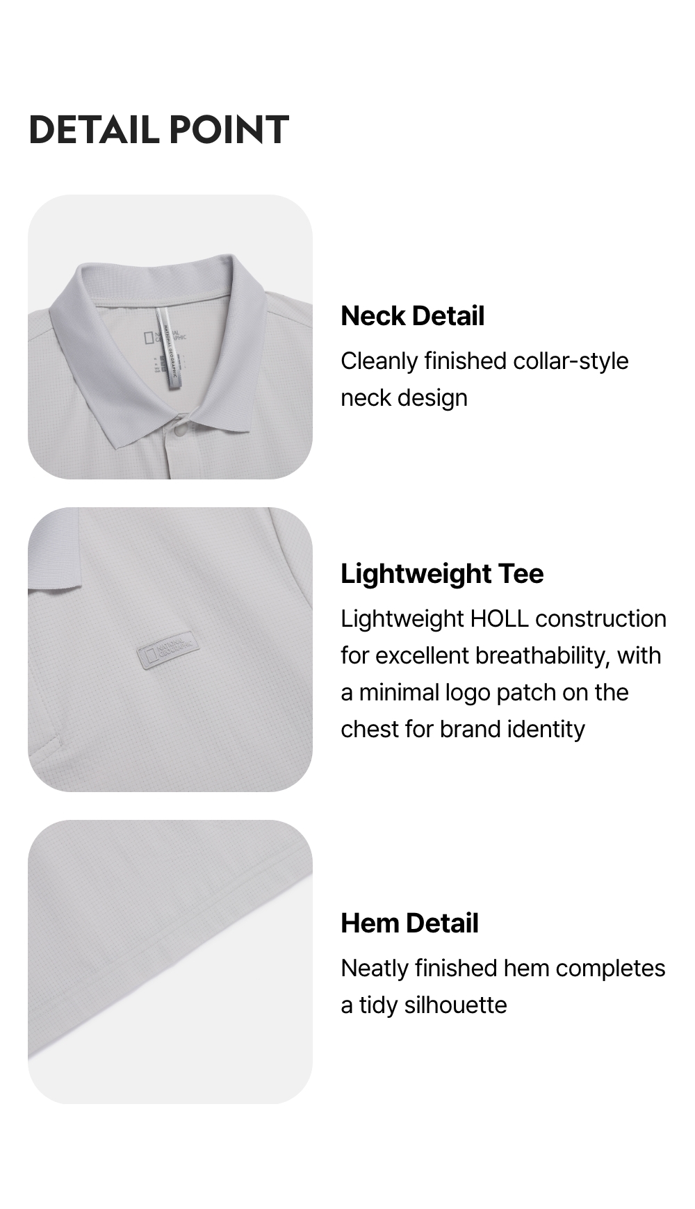 Woven with a lightweight HOLL for excellent breathability, moisture-wicking, and quick-drying cooling performance, ensuring all-day freshness. The 4-way stretch fabric provides exceptional freedom of movement, presented in a clean regular-fit collared tee silhouette.