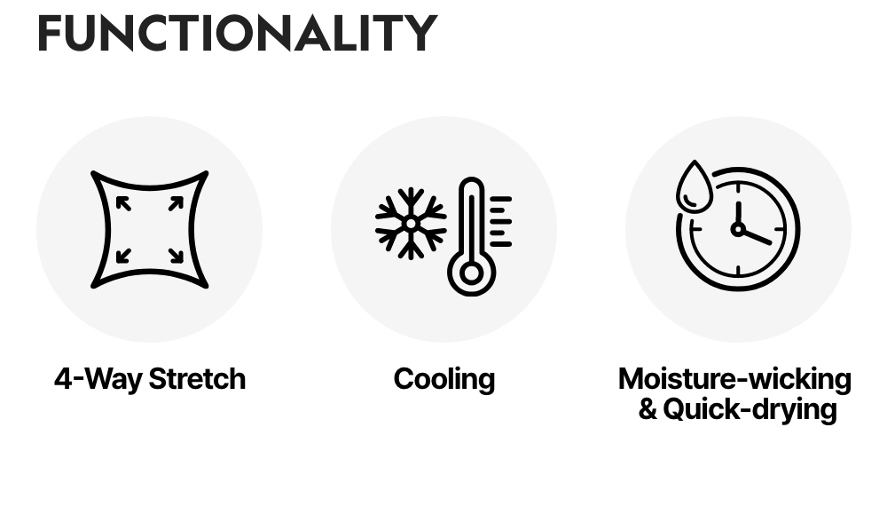 4-Way Stretch / Cooling / Moisture-wicking & Quick-drying