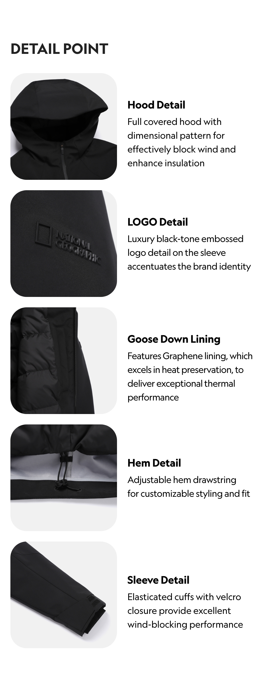 The outer shell utilises TPU 3L material, delivering excellent water-repellency and windproof efficacy. With excellent breathability of over 2,000g, it ensures a comfortable, non-stuffy wearing experience.
