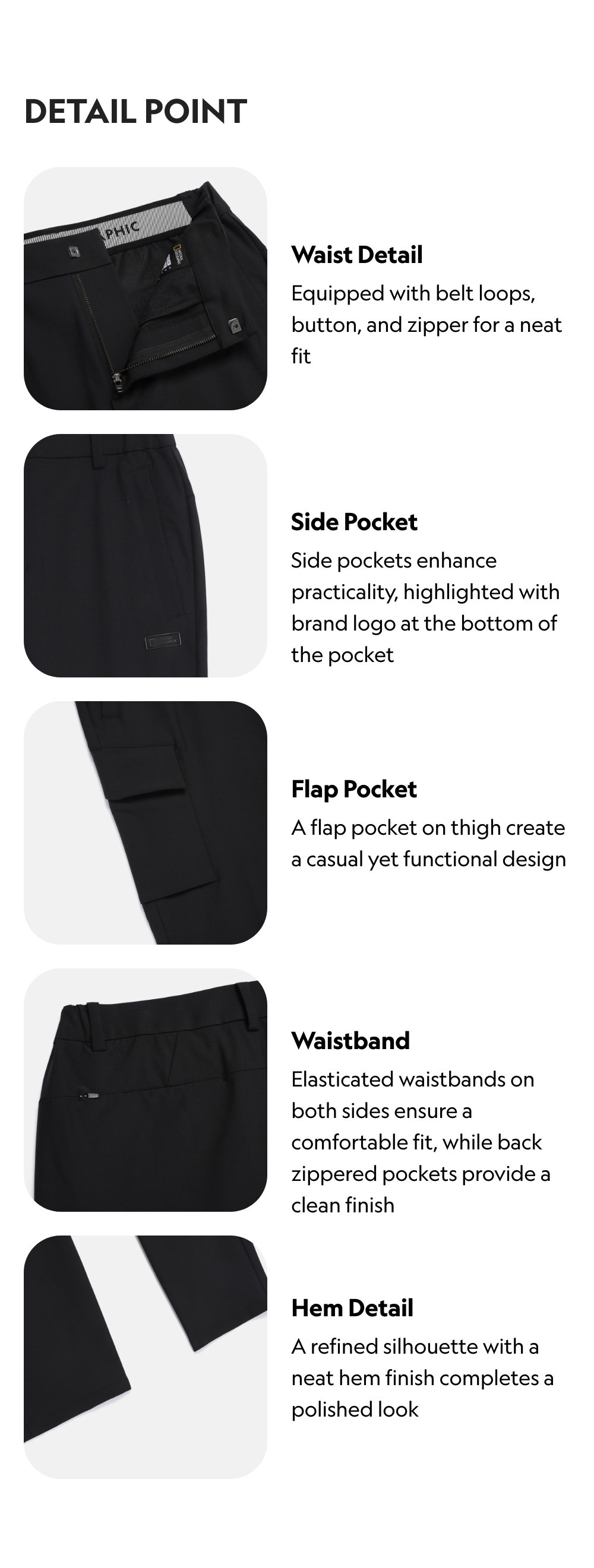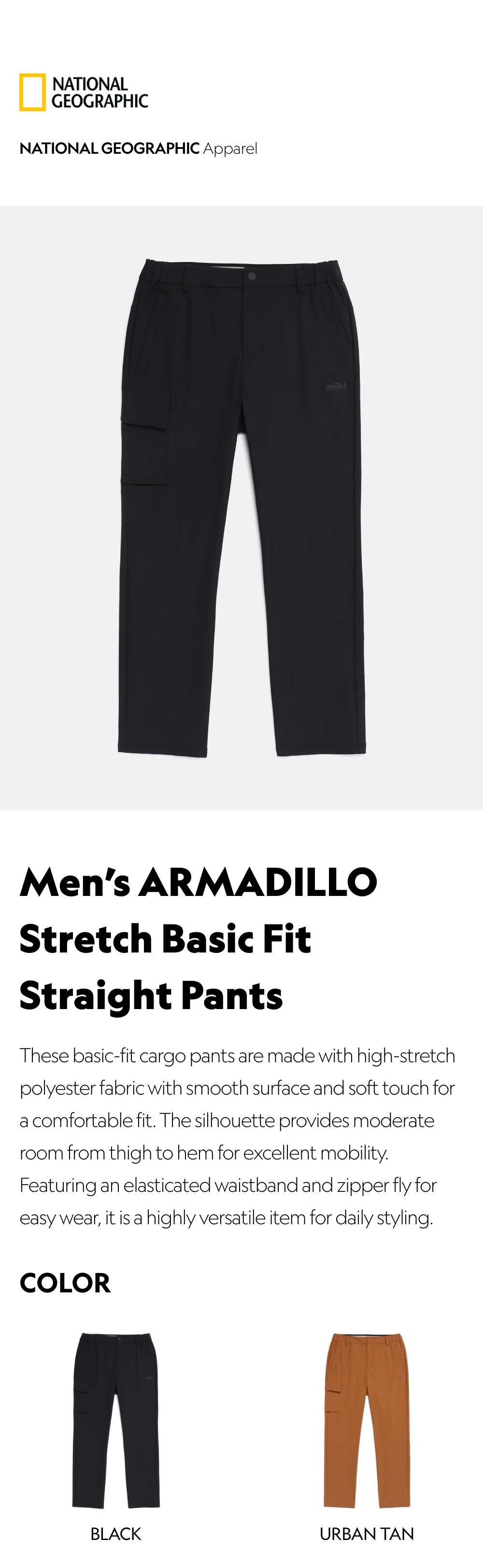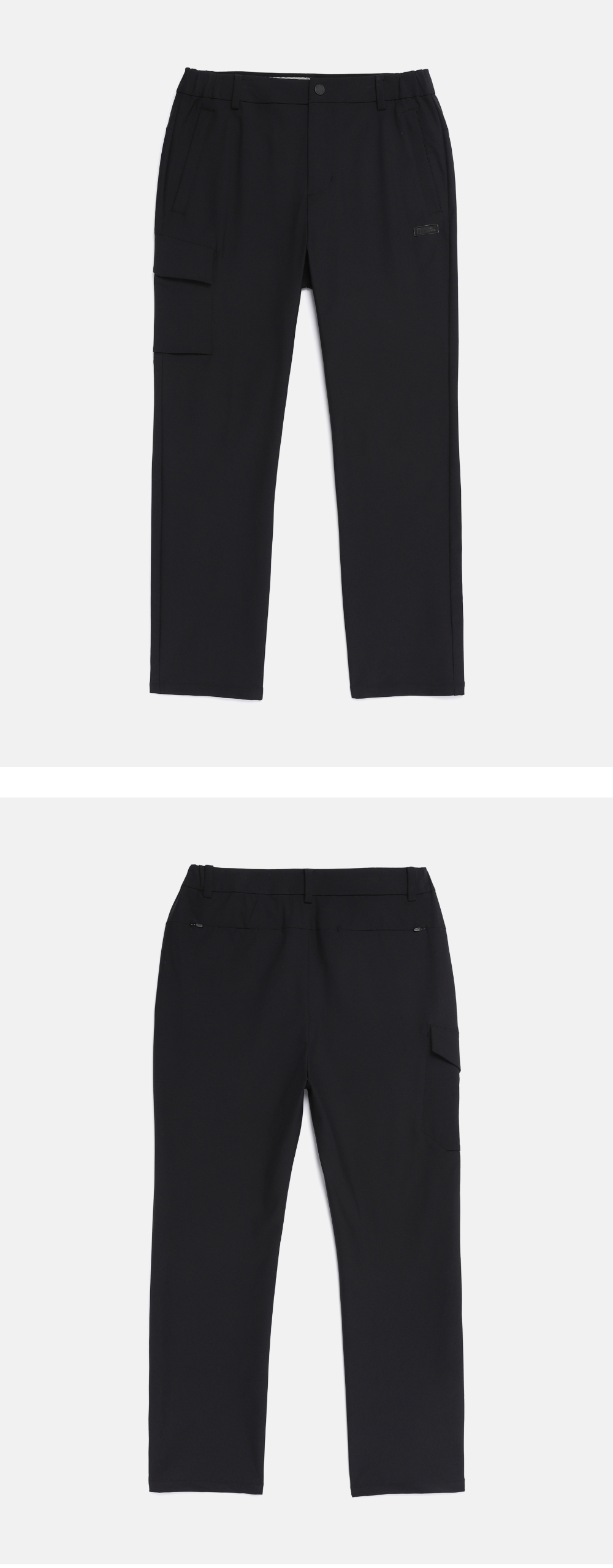 These basic-fit cargo pants are made with high-stretch polyester fabric with smooth surface and soft touch for a comfortable fit. The silhouette provides moderate room from thigh to hem for excellent mobility. Featuring an elasticated waistband and zipper fly for easy wear, it is a highly versatile item for daily styling.