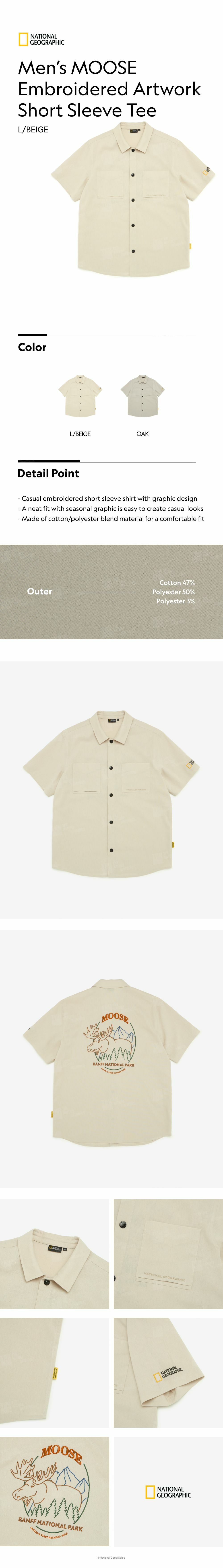 Men's MOOSE Embroidered Artwork Short Sleeve Shirt - L/BEIGE