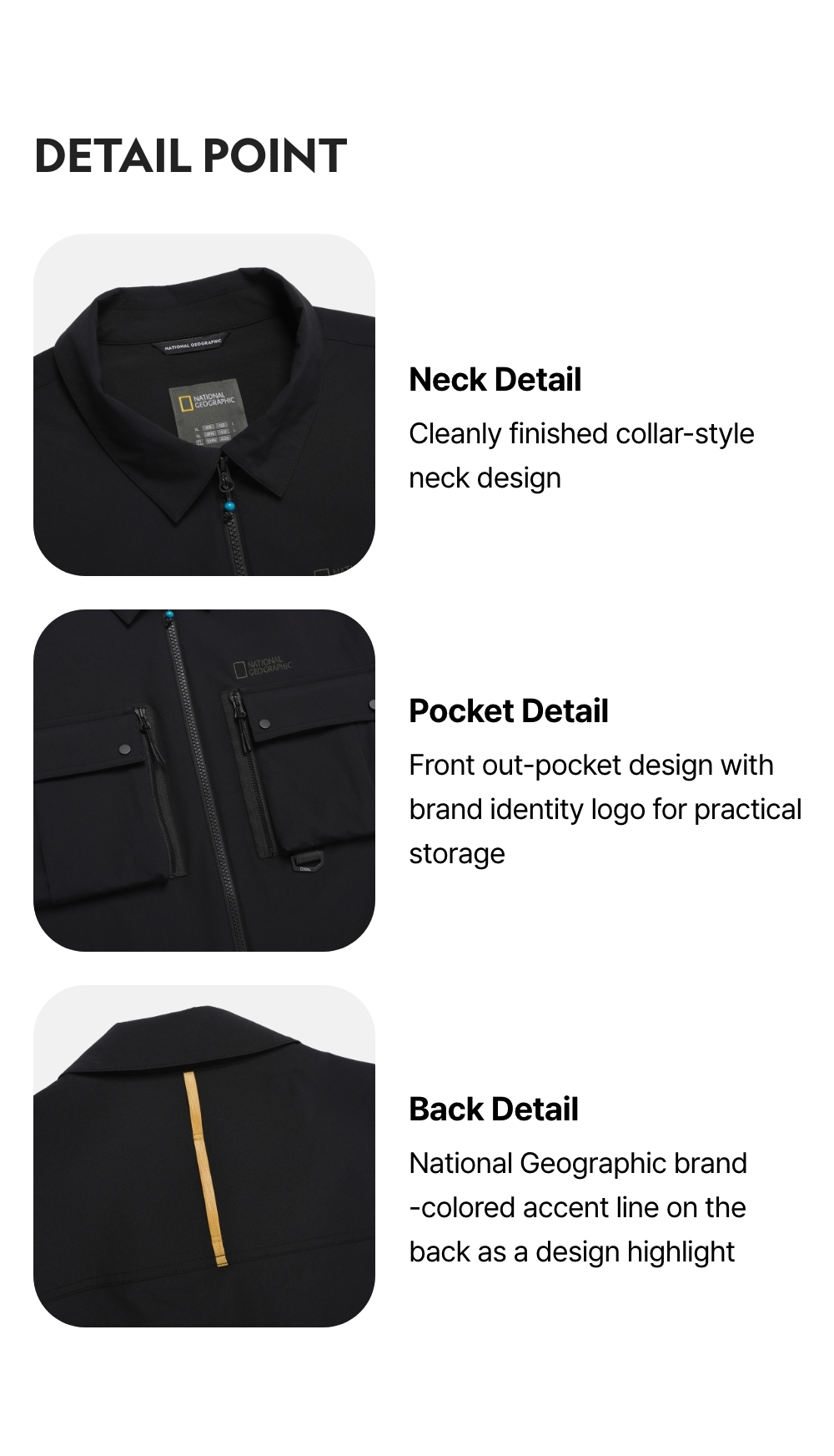 National Geographic brand-colored accent line on the back as a design highlight