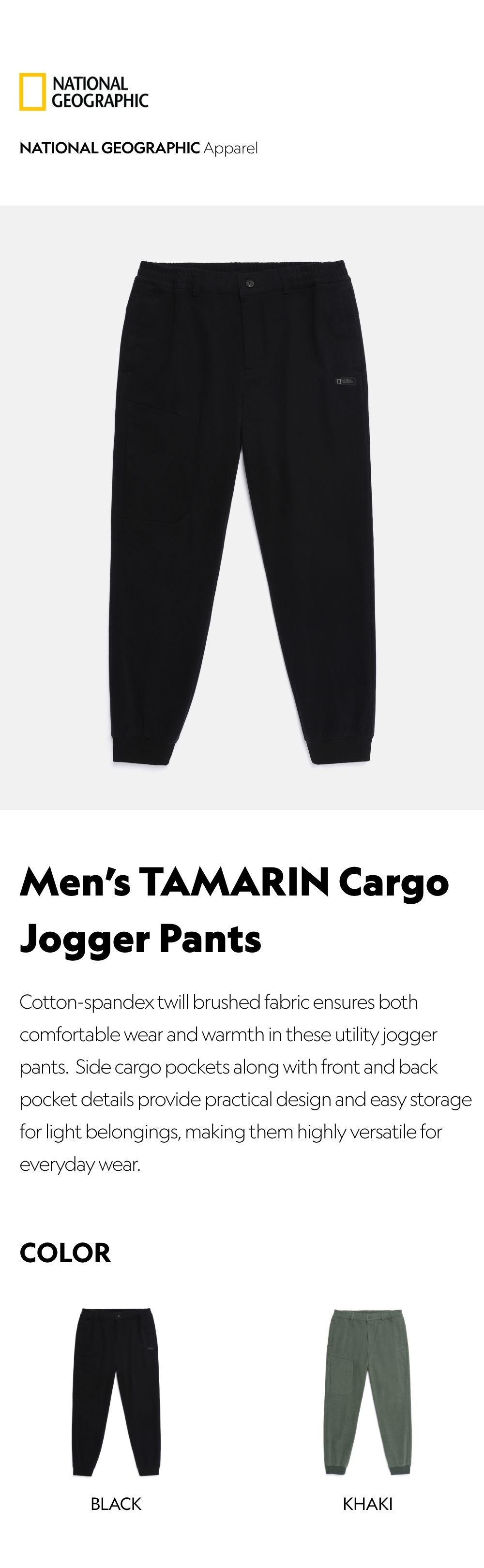 Cotton-spandex twill brushed fabric ensures both comfortable wear and warmth in these utility jogger pants.