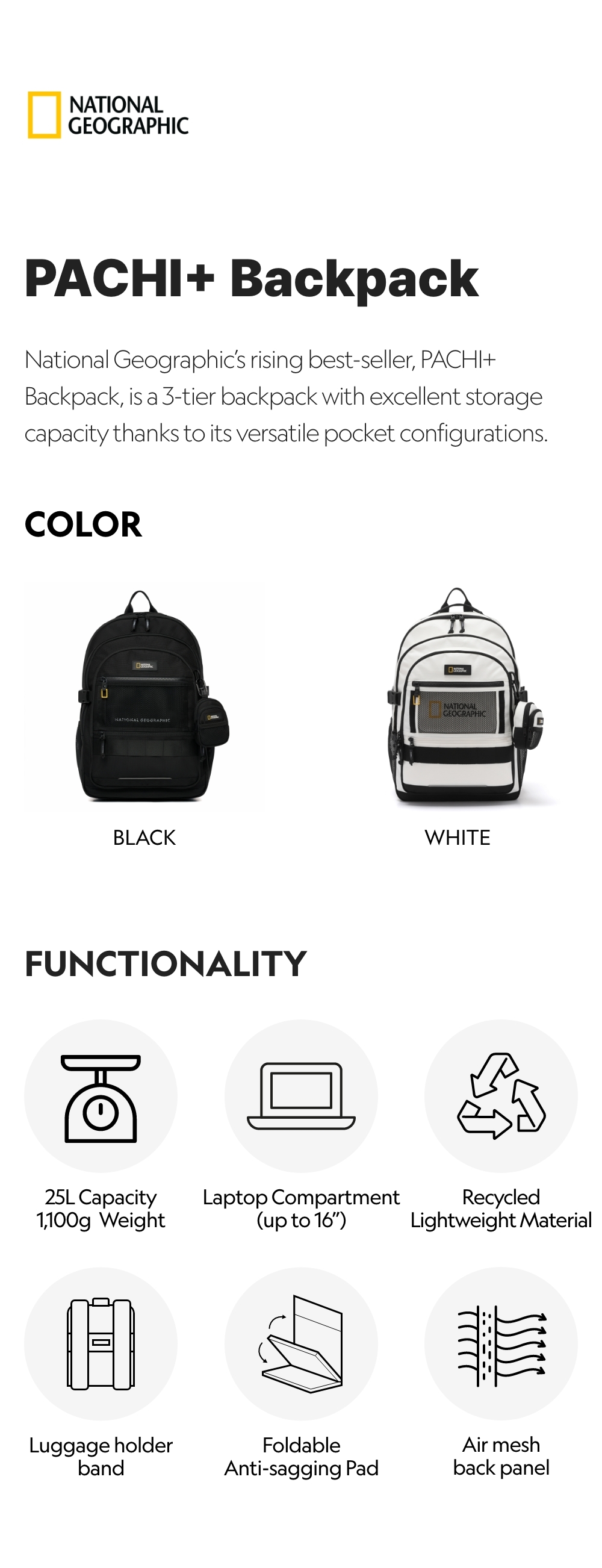 National Geographic's rising best-seller, PACHI+ Backpack, is a 3-tier backpack with excellent storage capacity thanks to its versatile pocket configurations.