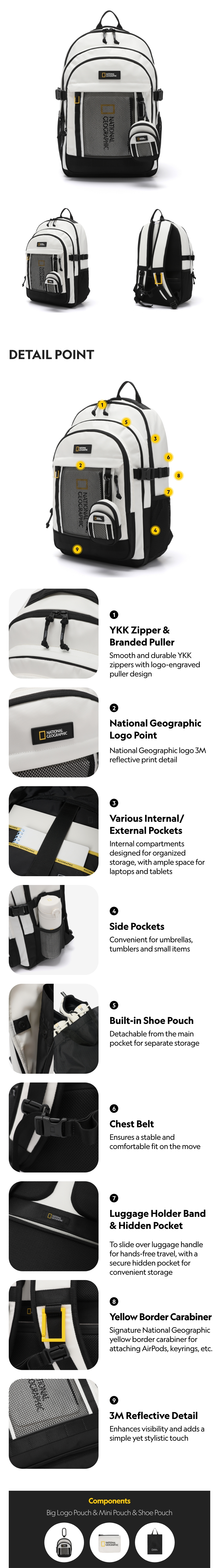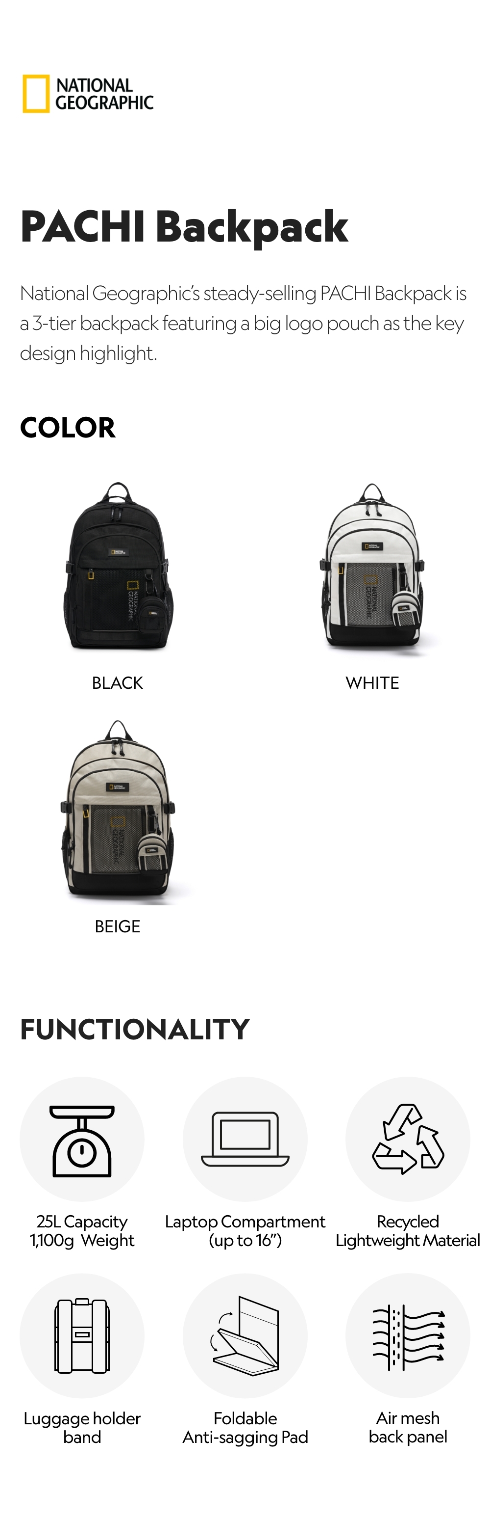 National Geographic’s steady-selling PACHI Backpack is a 3-tier backpack featuring a big logo pouch as the key design highlight.
