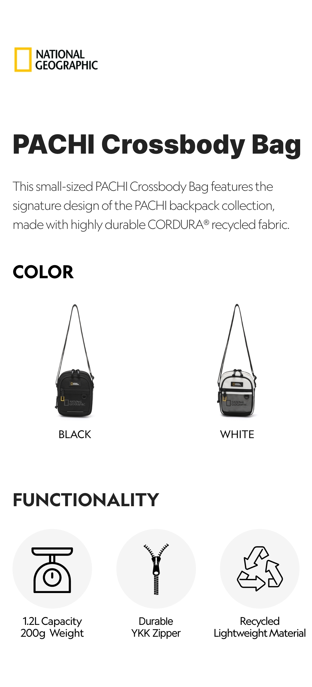 This small-sized PACHI Crossbody Bag features the signature design of the PACHI backpack collection, made with highly durable CORDURA® recycled fabric.
