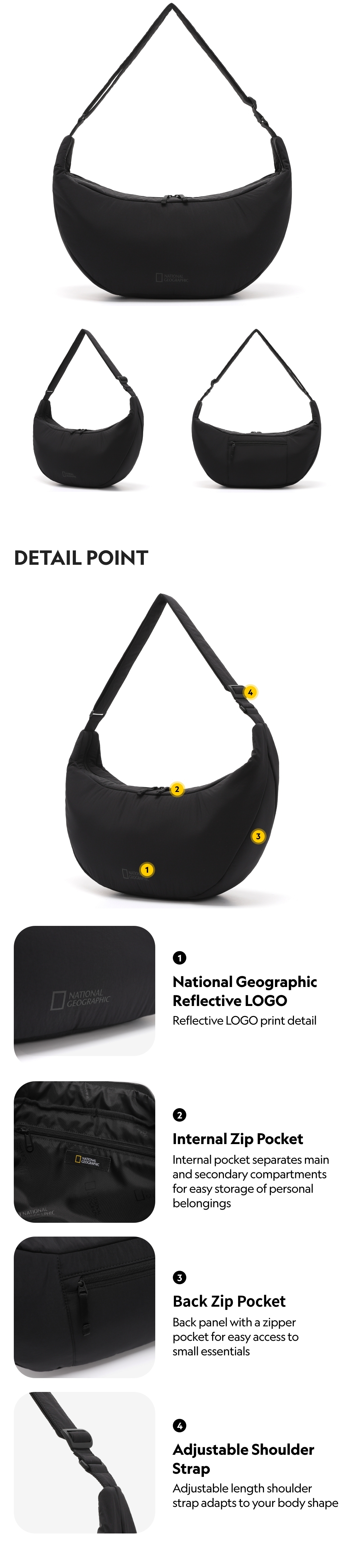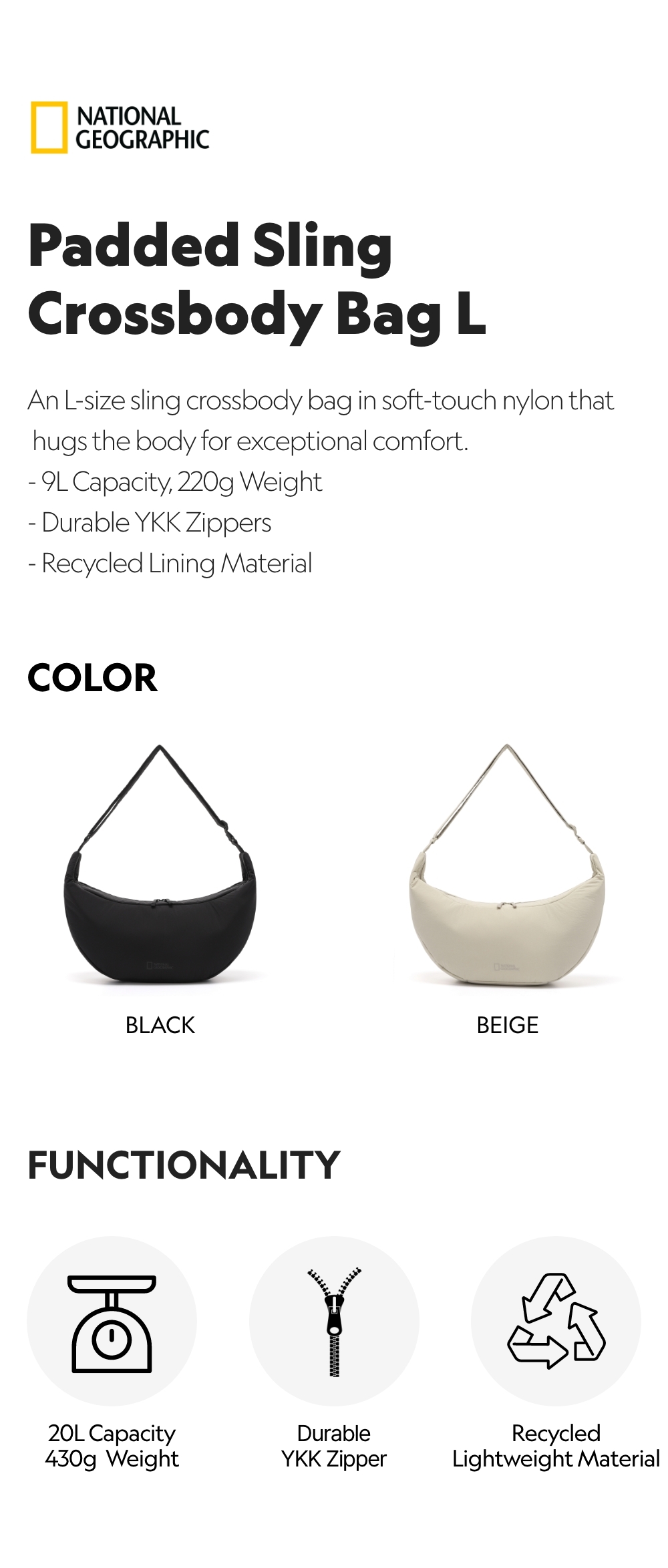 An L-size sling crossbody bag in soft-touch nylon that hugs the body for exceptional comfort.