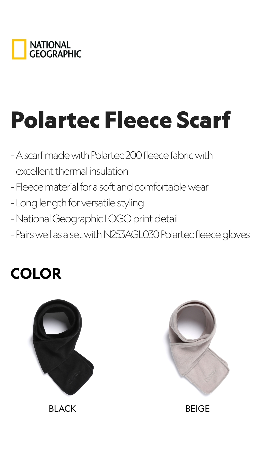 - A scarf made with Polartec 200 fleece fabric with excellent thermal insulation
