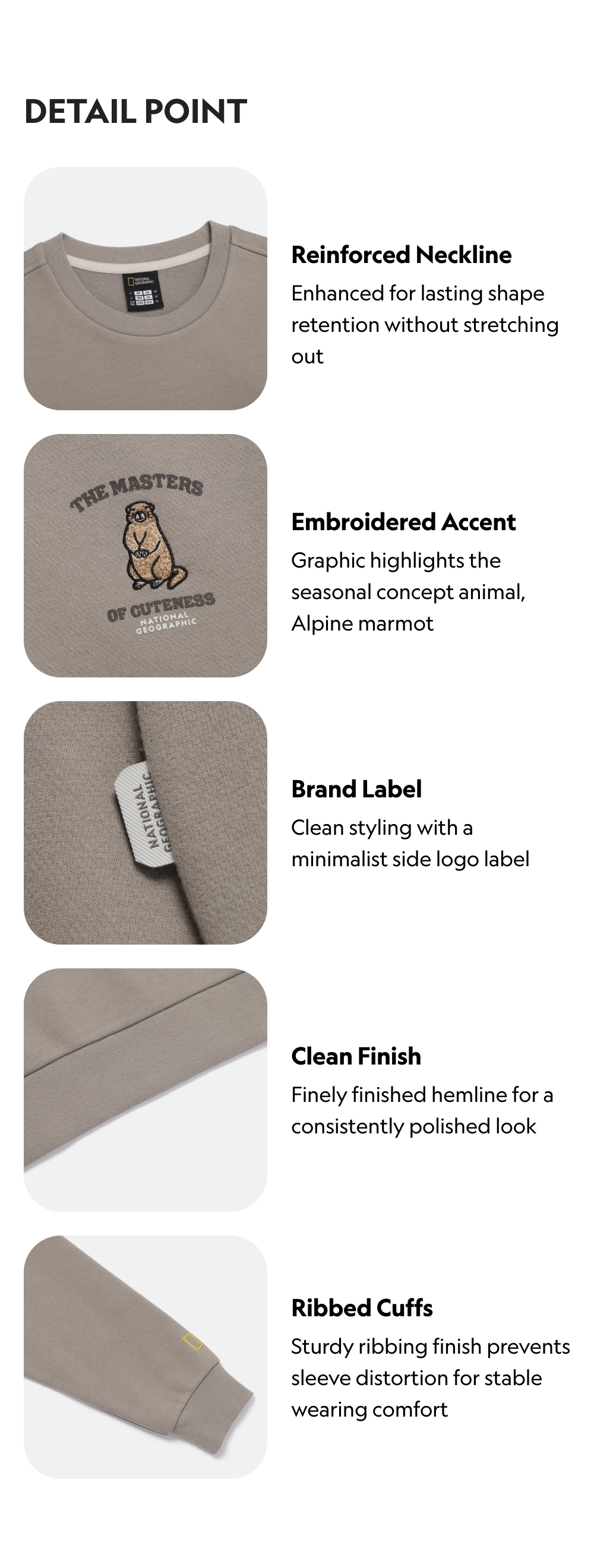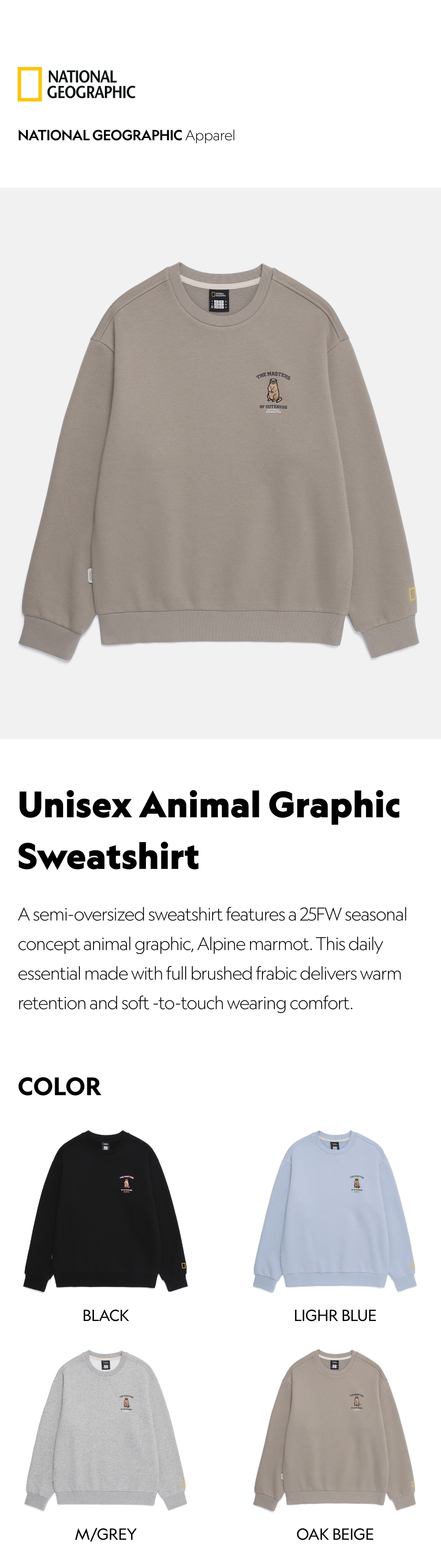 A semi-oversized sweatshirt features a 25FW seasonal concept animal graphic, Alpine marmot.