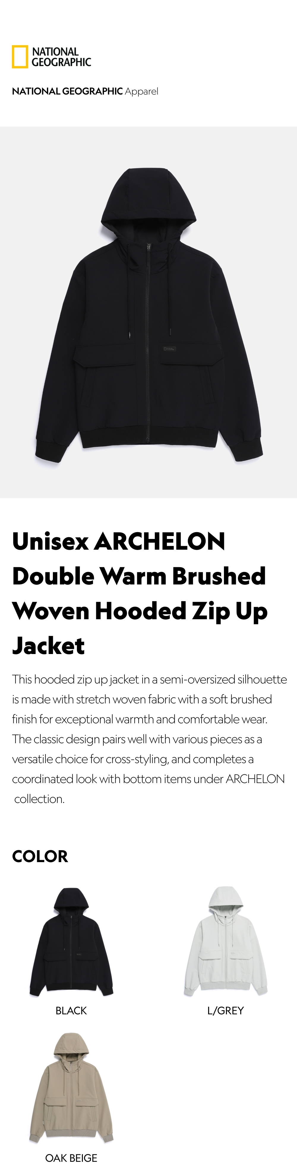 This hooded zip up jacket in a semi-oversized silhouette is made with stretch woven fabric with a soft brushed finish for exceptional warmth and comfortable wear.