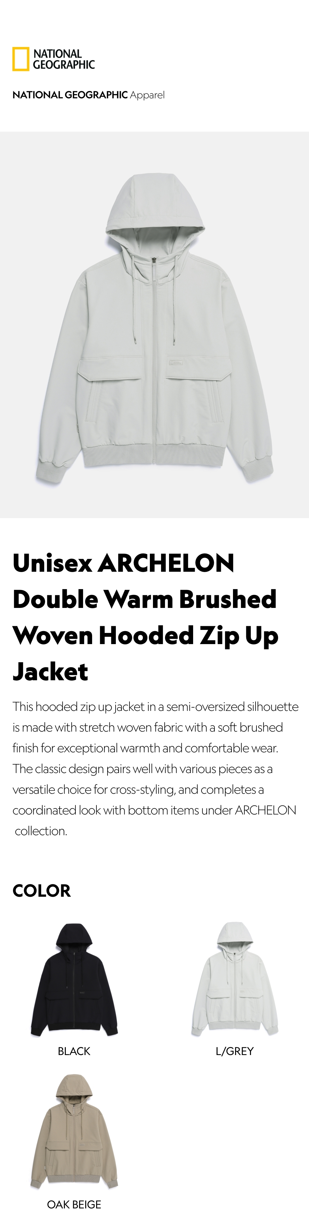 This hooded zip up jacket in a semi-oversized silhouette is made with stretch woven fabric with a soft brushed finish for exceptional warmth and comfortable wear.