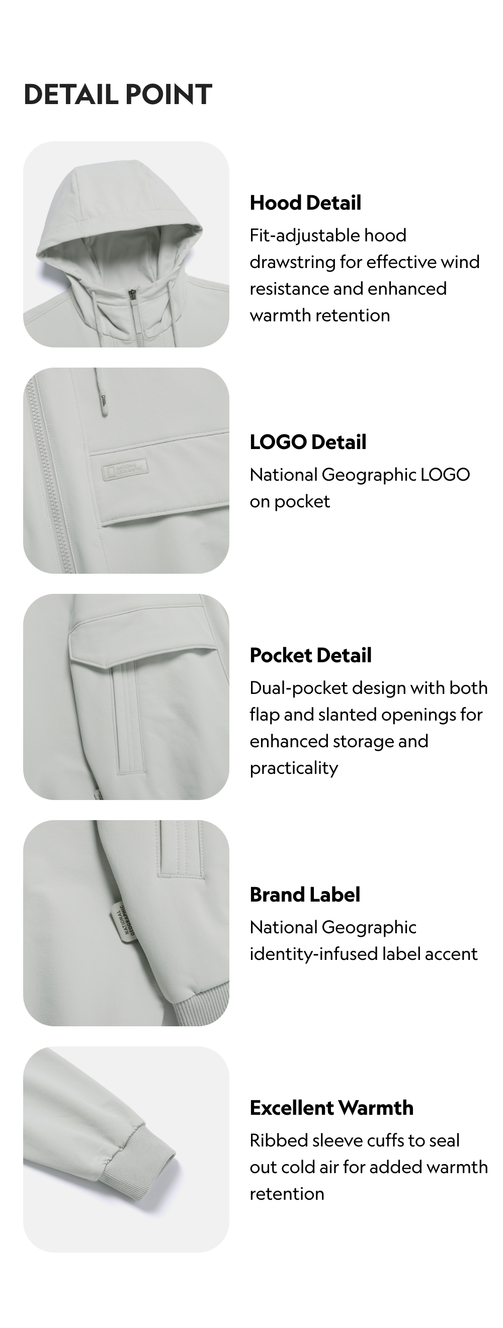 Fit-adjustable hood drawstring for effective wind resistance and enhanced warmth retention