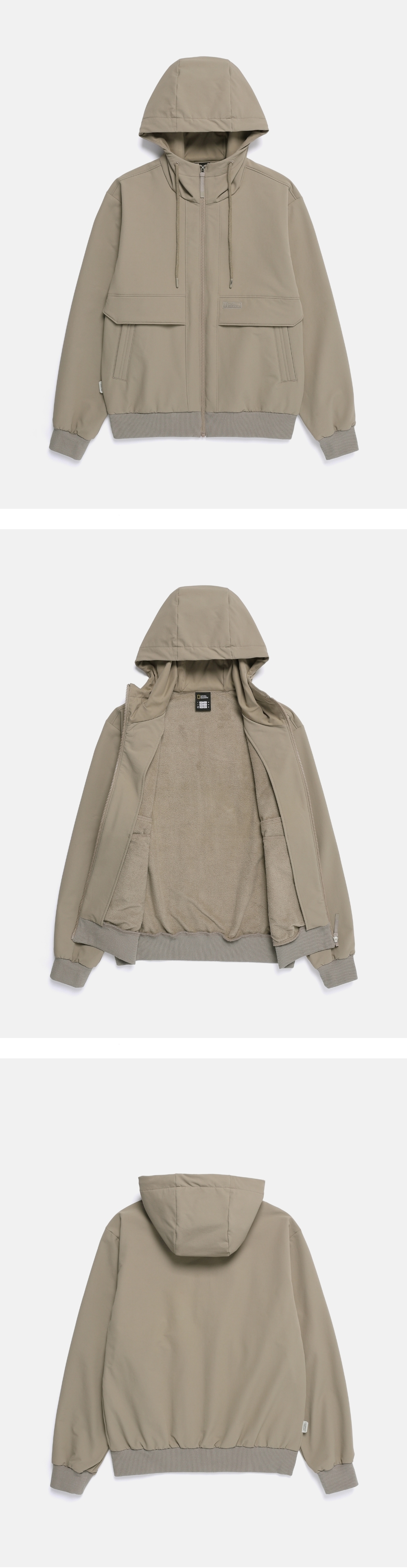 This hooded zip up jacket in a semi-oversized silhouette is made with stretch woven fabric with a soft brushed finish for exceptional warmth and comfortable wear.