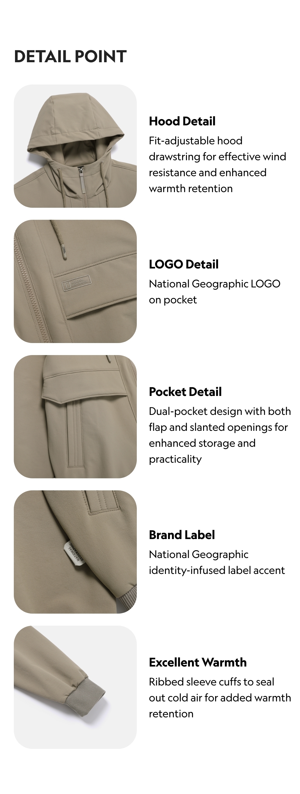 Fit-adjustable hood drawstring for effective wind resistance and enhanced warmth retention