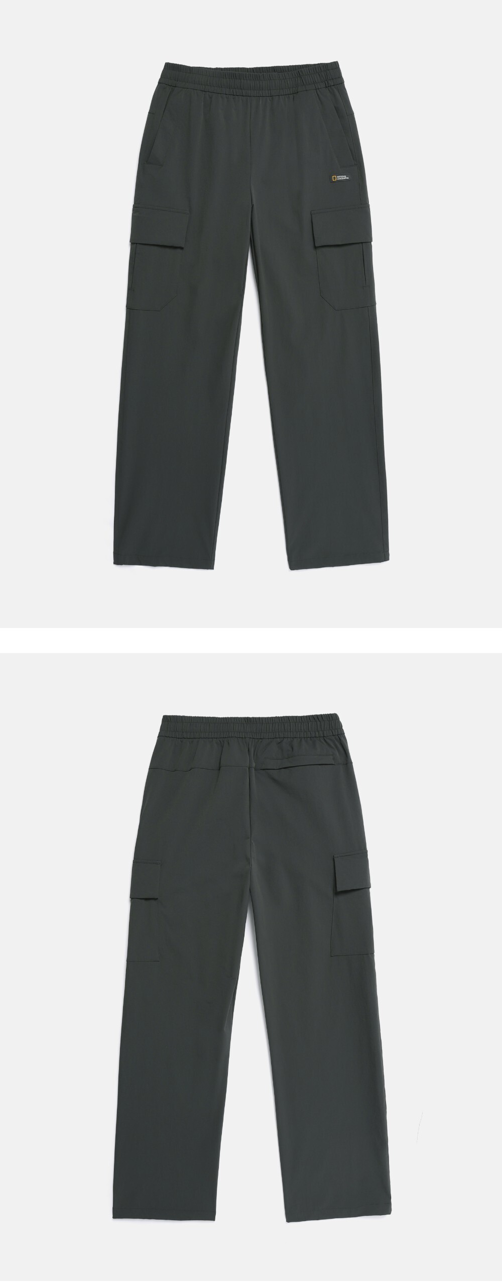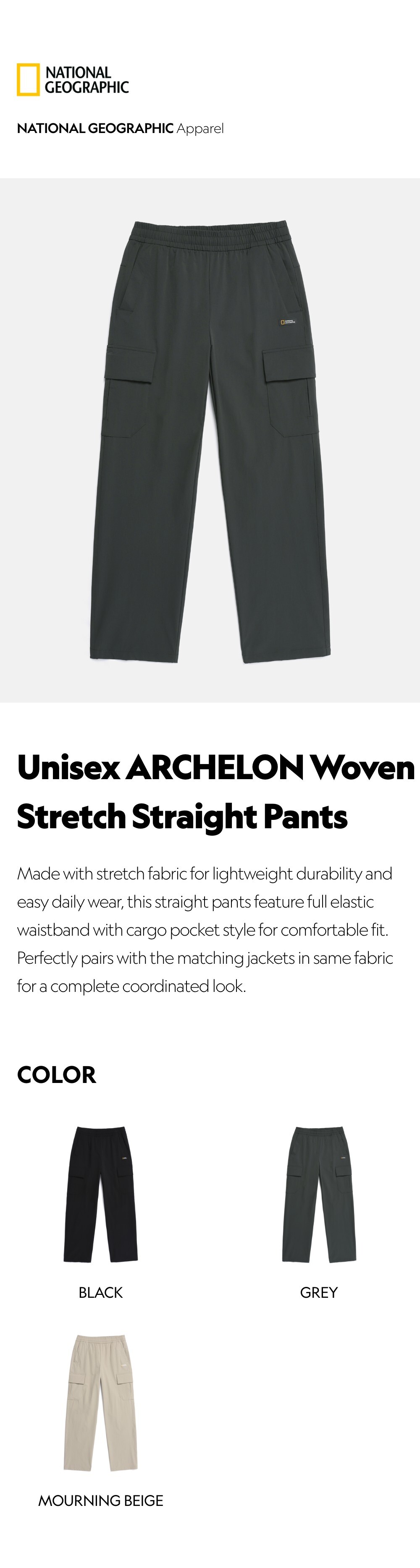Made with stretch fabric for lightweight durability and easy daily wear, this straight pants feature full elastic waistband with cargo pocket style for comfortable fit. Perfectly pairs with the matching jackets in same fabric for a complete coordinated look.