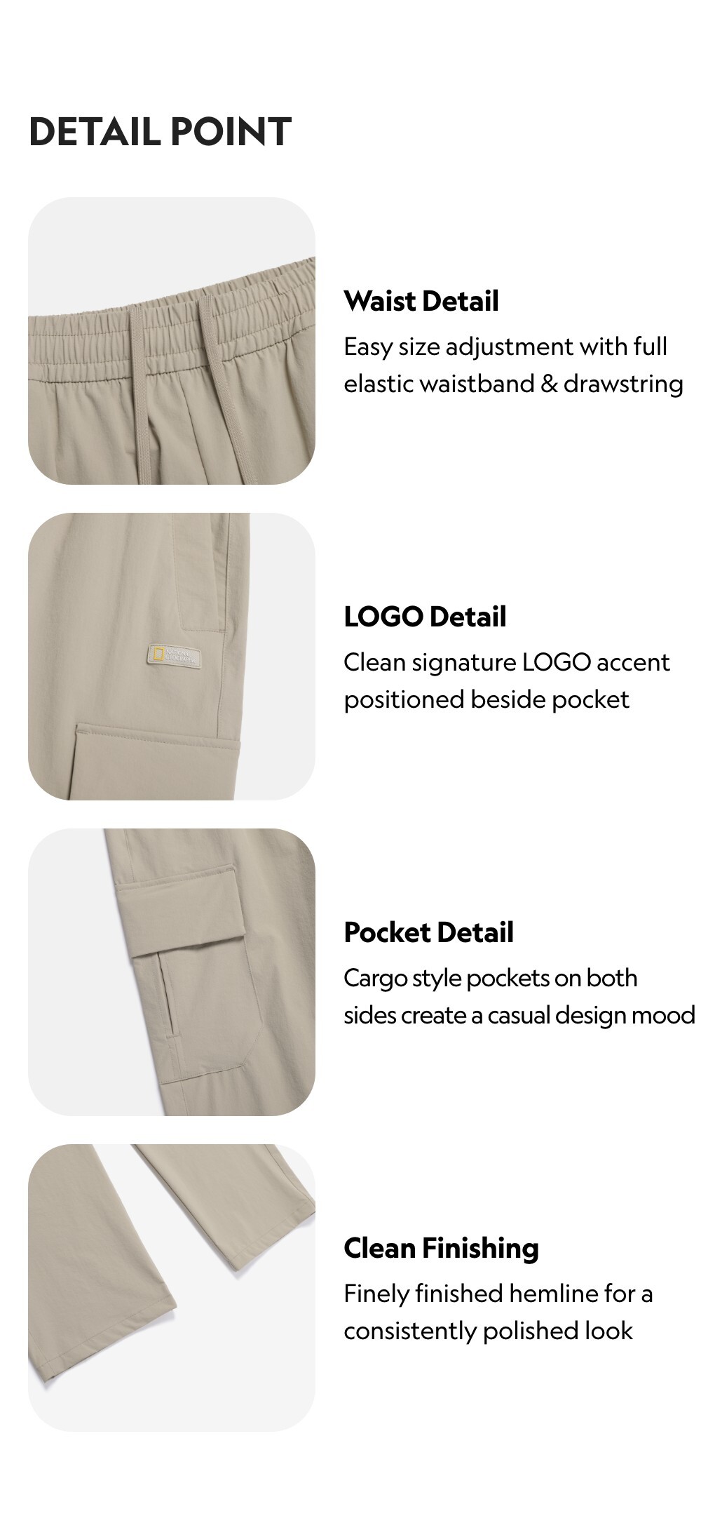 Made with stretch fabric for lightweight durability and easy daily wear, this straight pants feature full elastic waistband with cargo pocket style for comfortable fit. Perfectly pairs with the matching jackets in same fabric for a complete coordinated look.