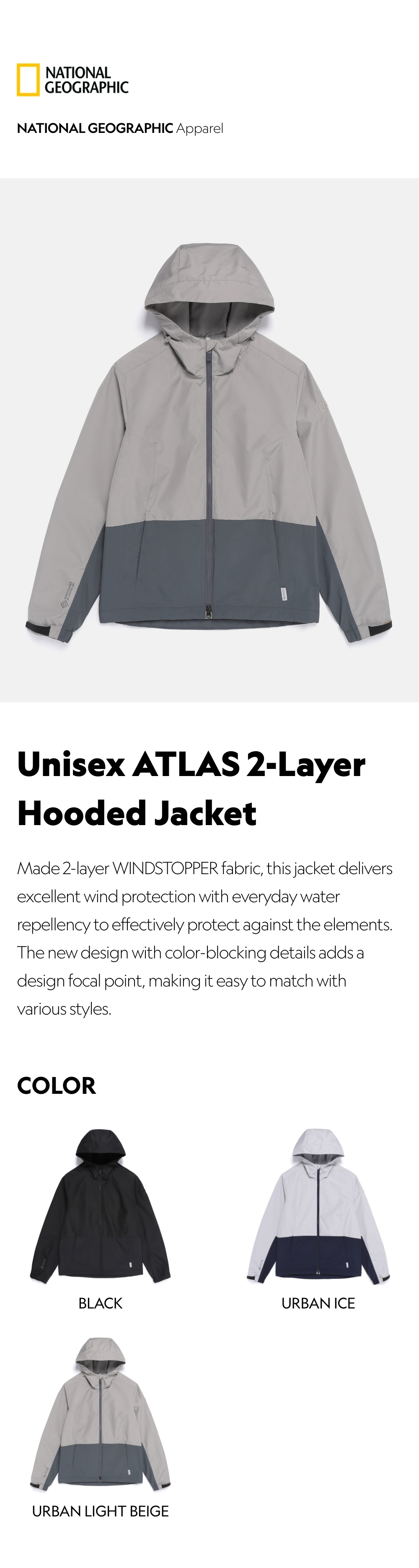 Made 2-layer WINDSTOPPER fabric, this jacket delivers excellent wind protection with everyday water repellency to effectively protect against the elements. The new design with color-blocking details adds a design focal point, making it easy to match with various styles.