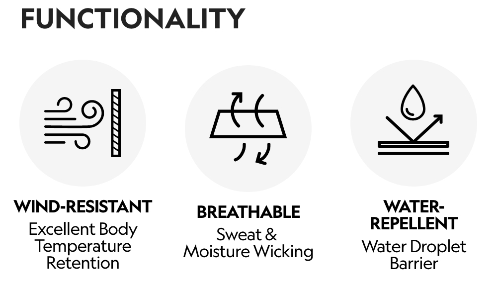 Effectively blocks wind while maintaining internal comfort with superior water repellency and breathability