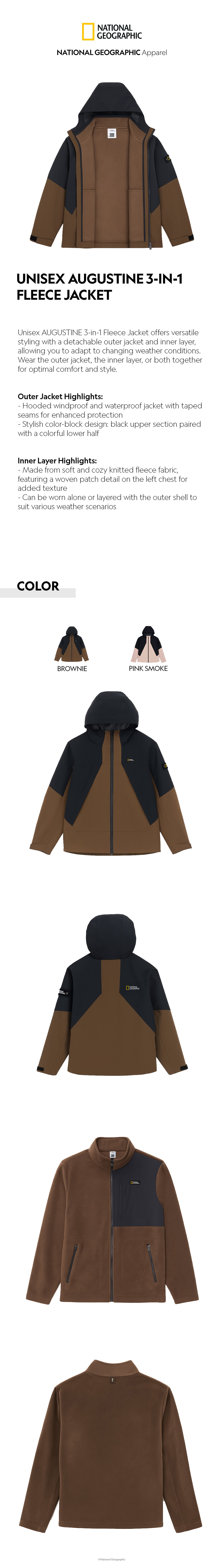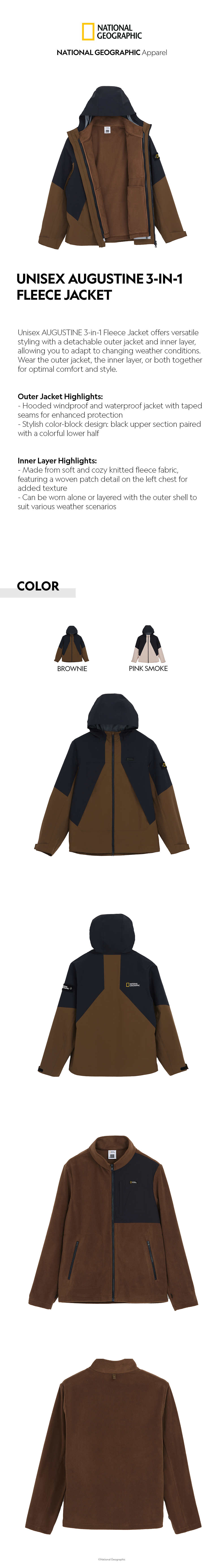 Unisex AUGUSTINE 3-in-1 Fleece Jacket offers versatile styling with a detachable outer jacket and inner layer, allowing you to adapt to changing weather conditions. Wear the outer jacket, the inner layer, or both together for optimal comfort and style.