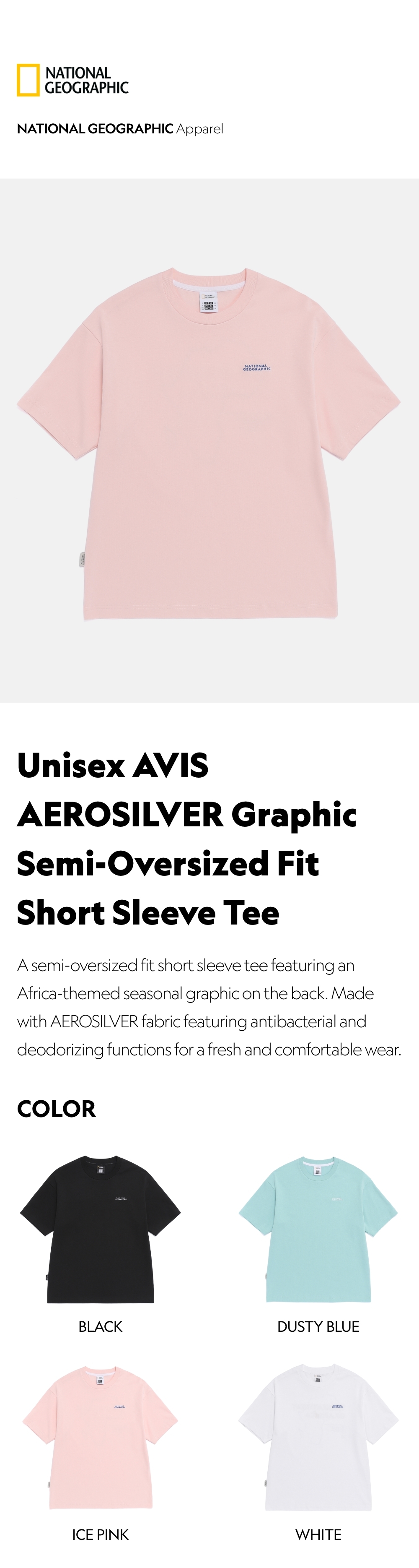 A semi-oversized fit short sleeve tee featuring an Africa-themed seasonal graphic on the back. Made with AEROSILVER fabric featuring antibacterial and deodorizing functions for a fresh and comfortable wear.
