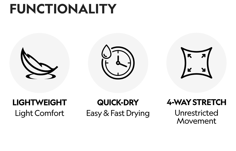 - Lightweight / Moisture Wicking & Quick-Dry / 4-Way Stretch