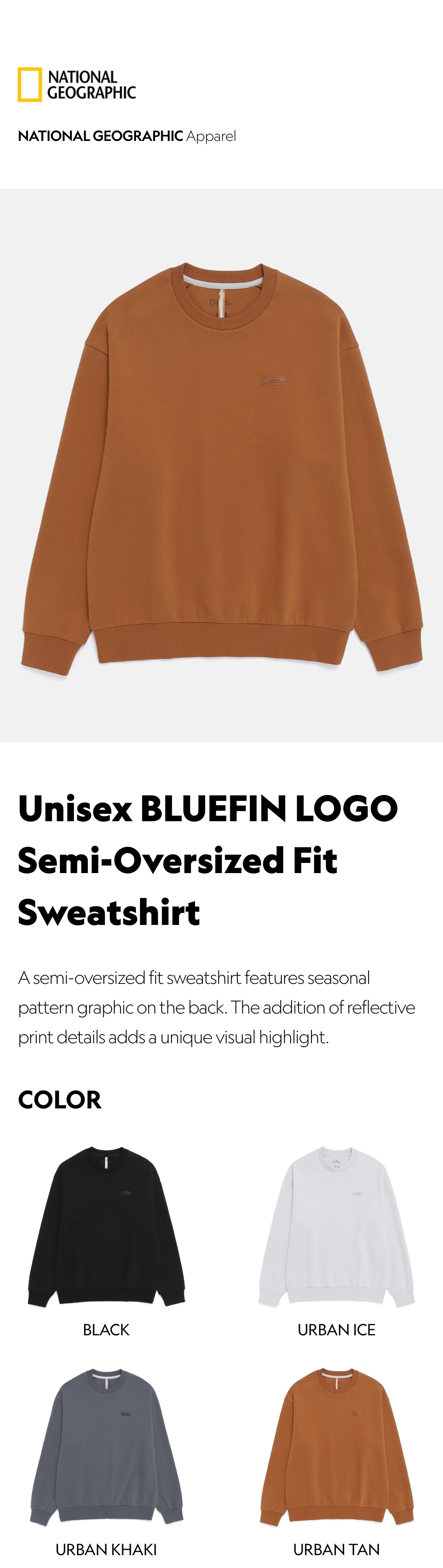 A semi-oversized fit sweatshirt features seasonal pattern graphic on the back.