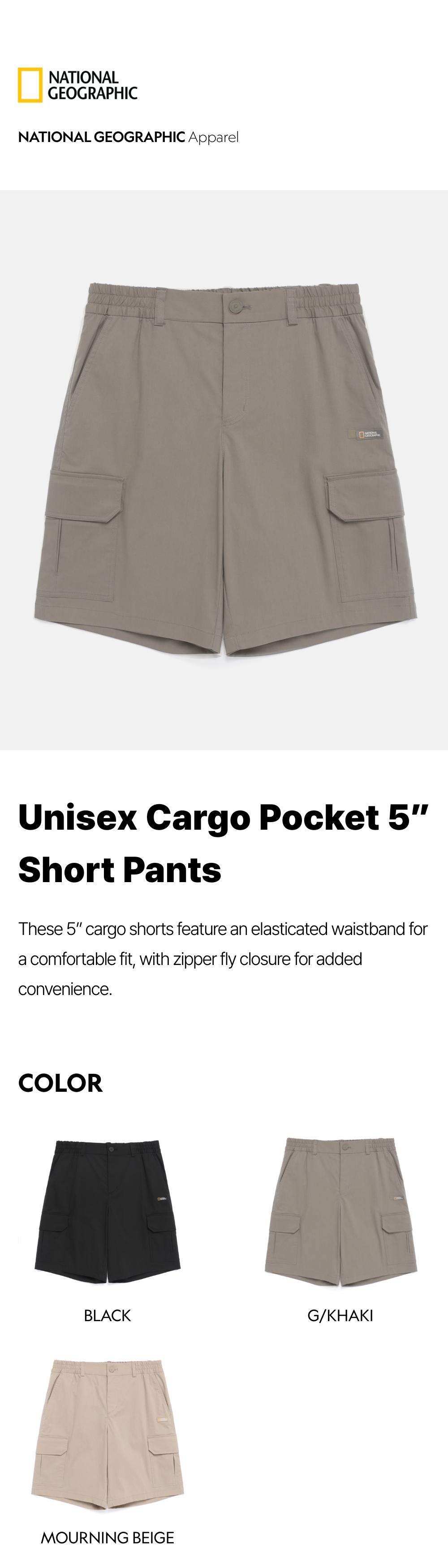 These 5" cargo shorts feature an elasticated waistband for a comfortable fit, with zipper fly closure for added convenience.