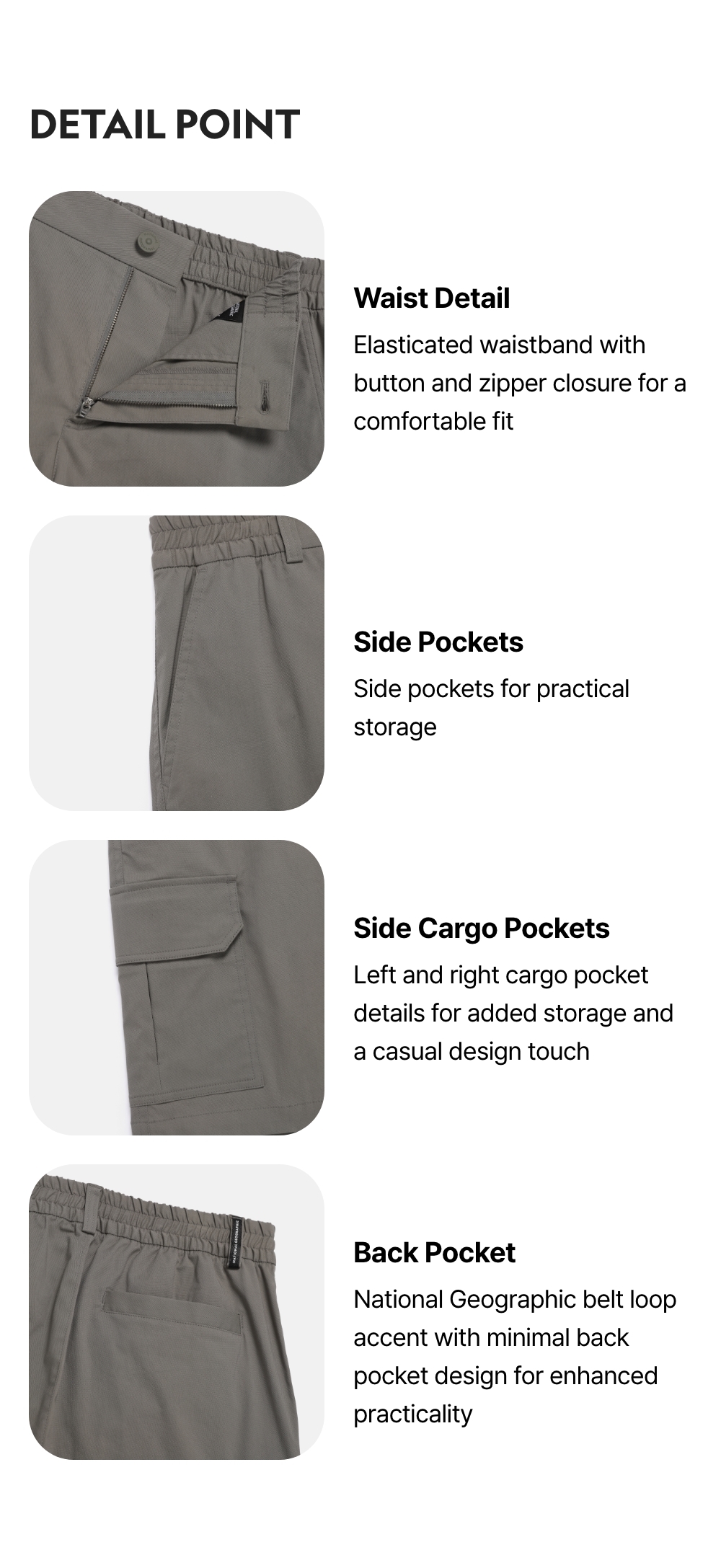National Geographic belt loop accent with minimal back pocket design for enhanced practicality