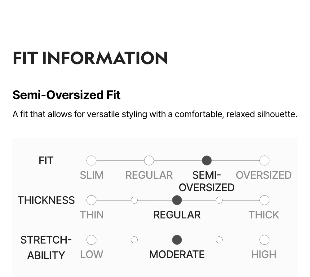Semi-Oversized Fit / Thickness: Regular / Stretchability: Moderate