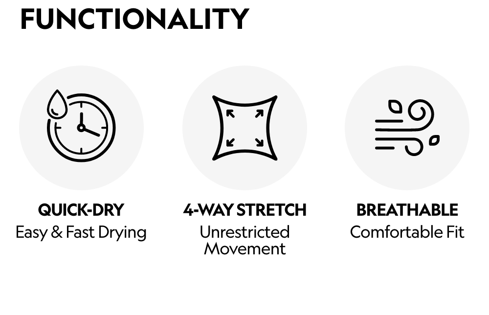 Moisture-wicking & Quick-drying / 4-way Stretch / Breathability