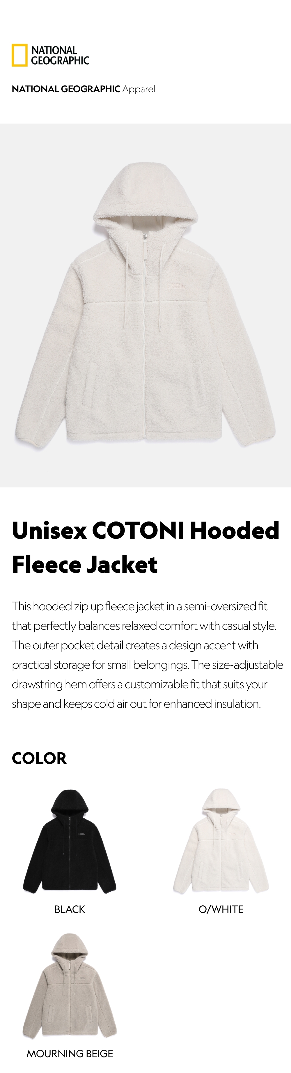 This hooded zip up fleece jacket in a semi-oversized fit that perfectly balances relaxed comfort with casual style. The outer pocket detail creates a design accent with practical storage for small belongings. The size-adjustable drawstring hem offers a customizable fit that suits your shape and keeps cold air out for enhanced insulation.