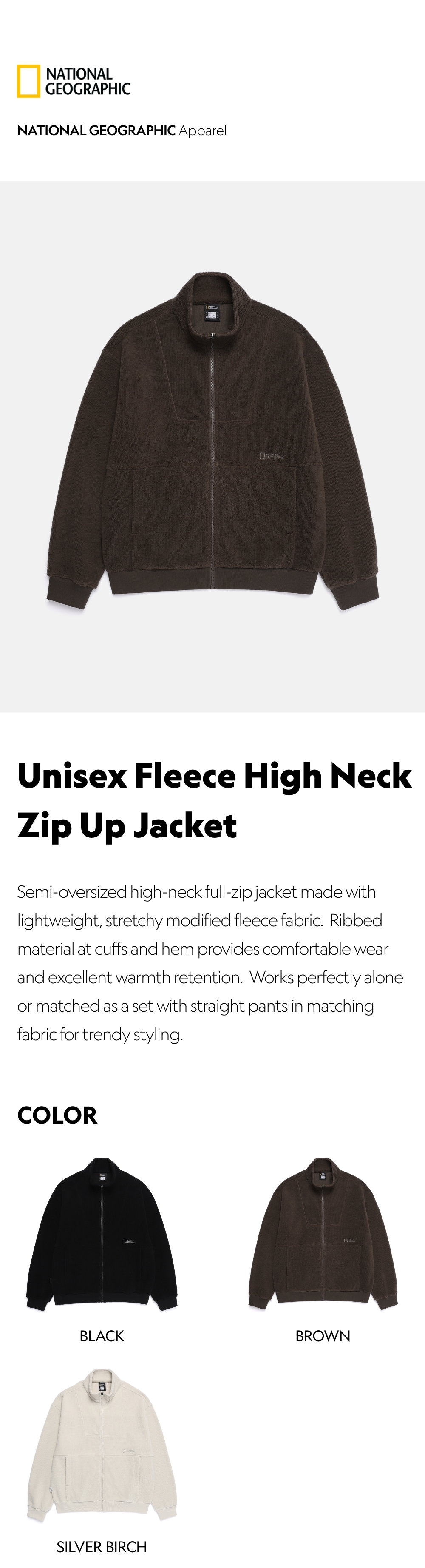 Semi-oversized high-neck full-zip jacket made with lightweight, stretchy modified fleece fabric.