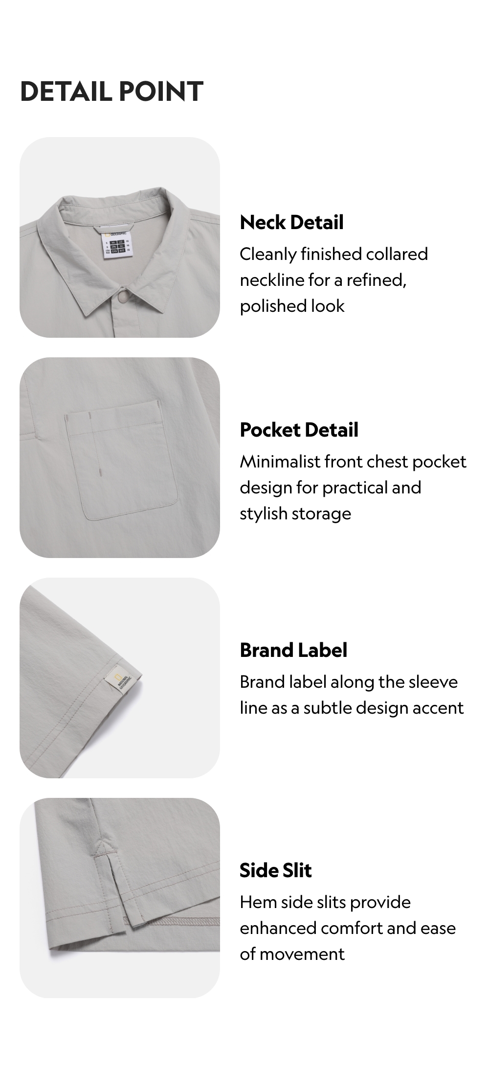 Cleanly finished collared neckline for a refined, polished look