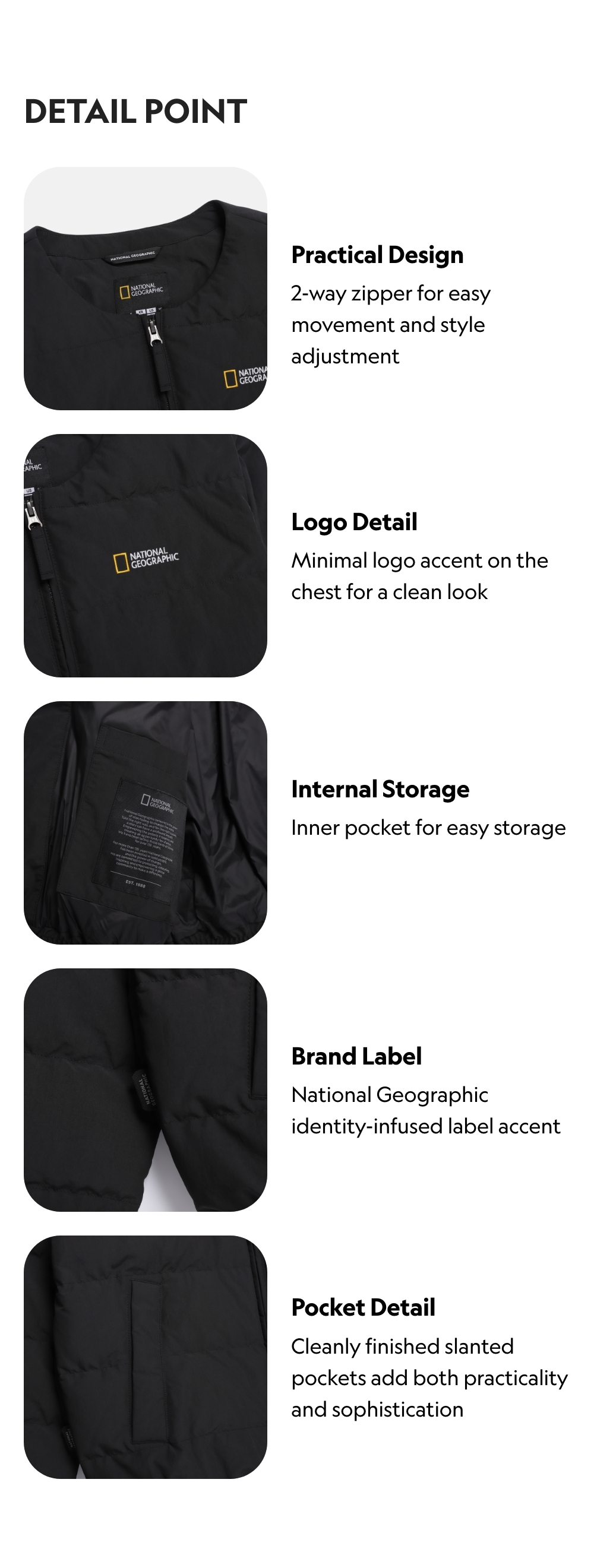National Geographic signature lightweight jacket versatile for a standalone outerwear during transitional seasons or as a layering piece under various winter jackets.