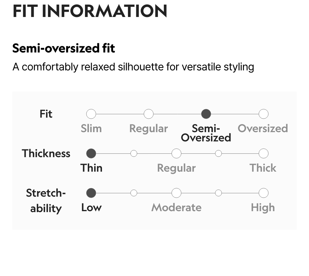 Semi-oversized fit / Thickness: Thin / Stretchability: Low