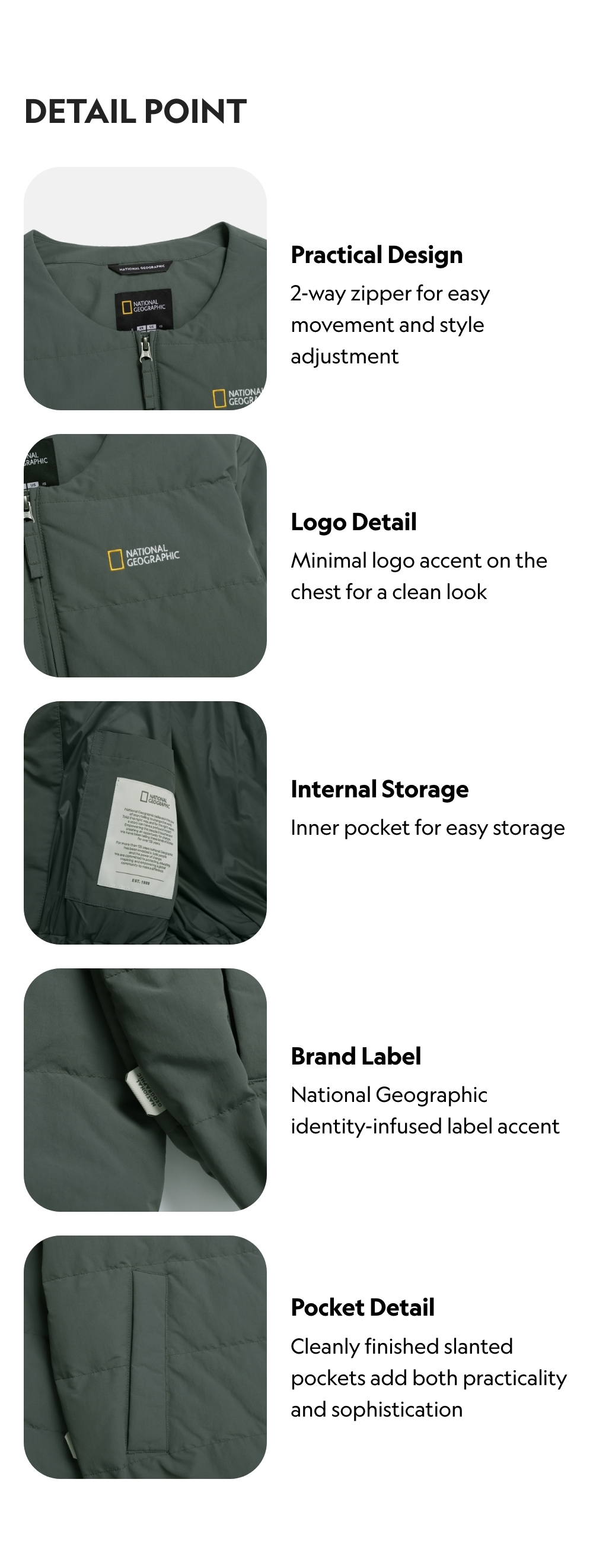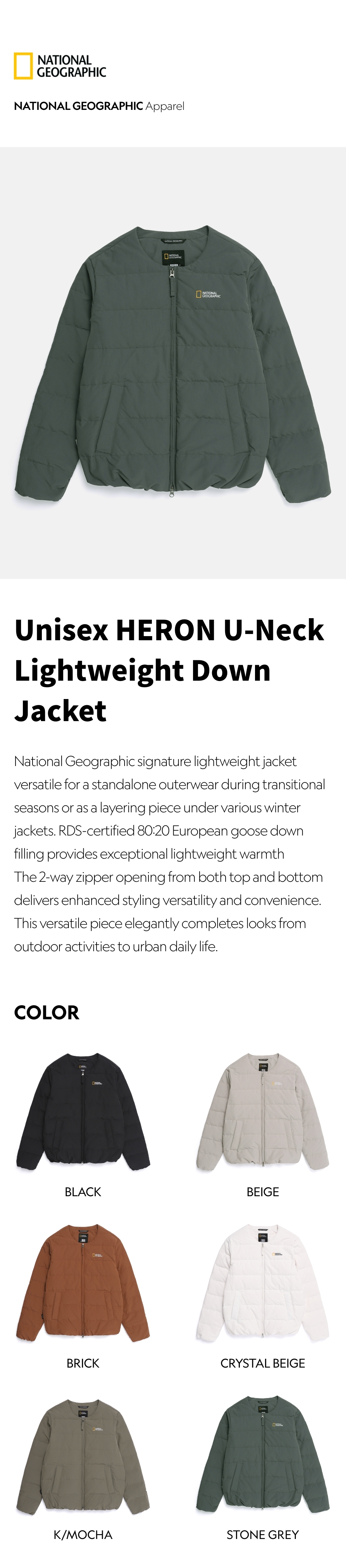 National Geographic signature lightweight jacket versatile for a standalone outerwear during transitional seasons or as a layering piece under various winter jackets.