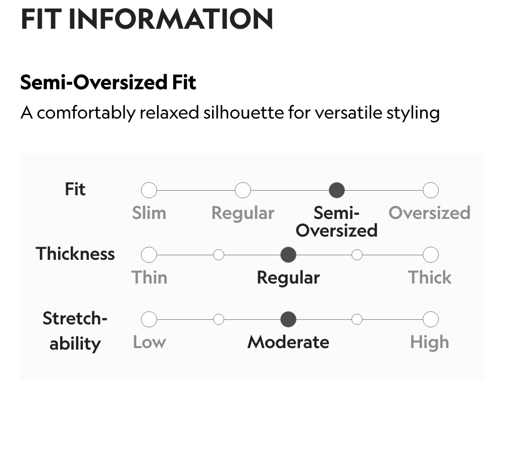 -Semi-Oversized Fit: A comfortably relaxed silhouette for versatile styling