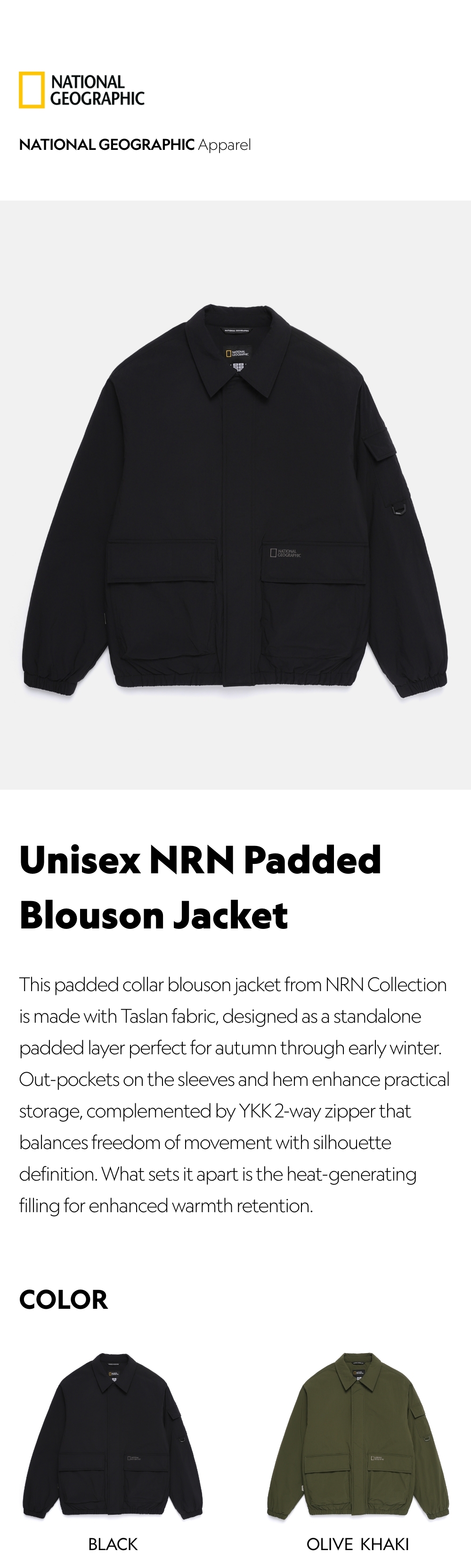 This padded collar blouson jacket from NRN Collection is made with Taslan fabric, designed as a standalone padded layer perfect for autumn through early winter.